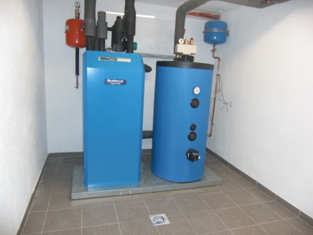 Die Heizungsanlage besteht aus einem Öl-Brennwertkessel und einem Festbrennstoffkessel. Im Sanitärbereich wurde eine Frischwarmwasserstation installiert.