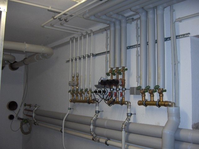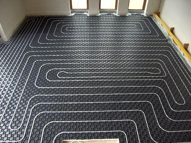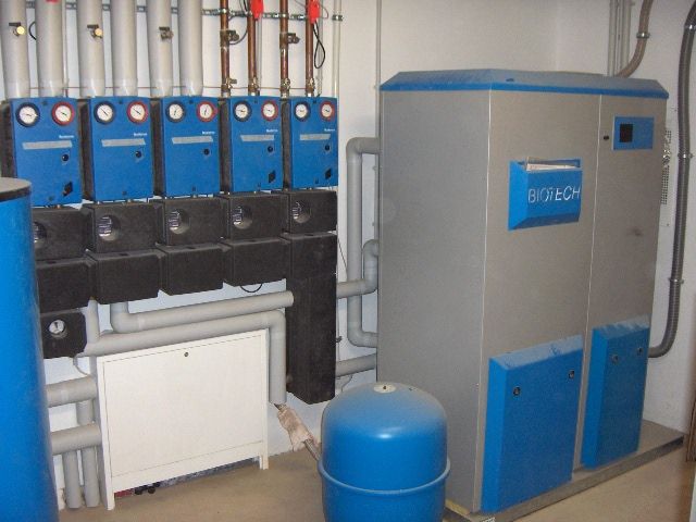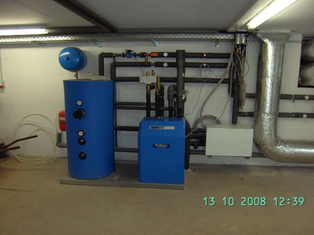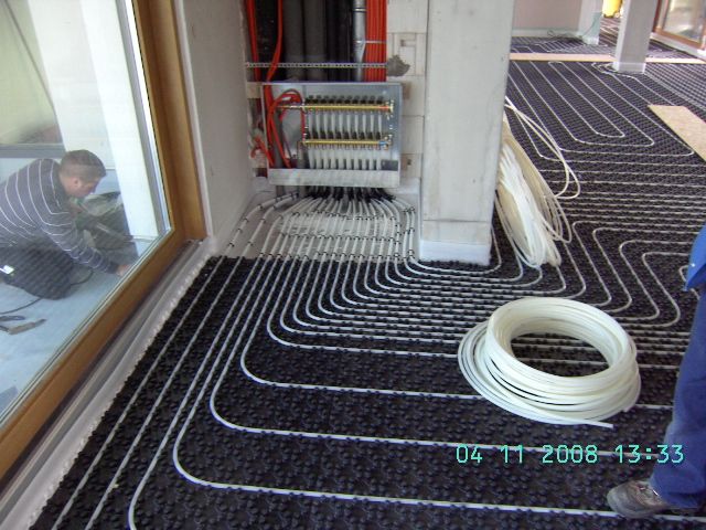 Die Heizungsinstallation besteht aus einer Sole-Wasser-Wärmepumpe mit Erdsondenbohrung und einer Fußbodenheizung.