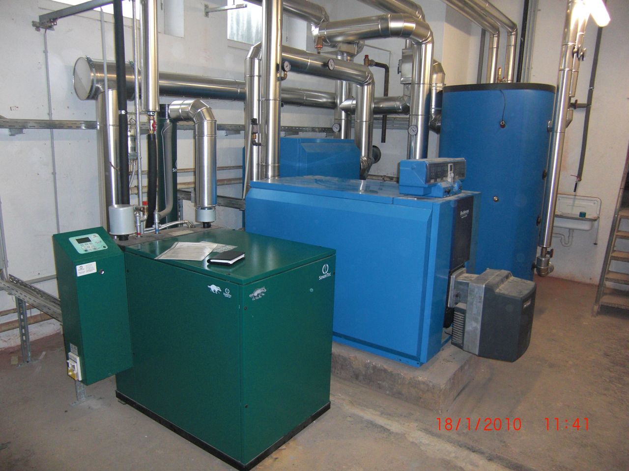 Die Heizungsanlage besteht aus einem Pellet-Heizkessel mit 50 kW Leistung und einem Pellet-Lagerraum.